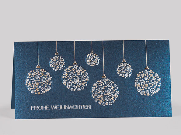 Weihnachtskarten für Firmen, in Blau mit Silberfolienprägung